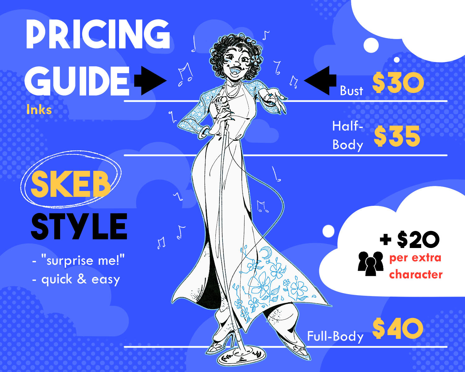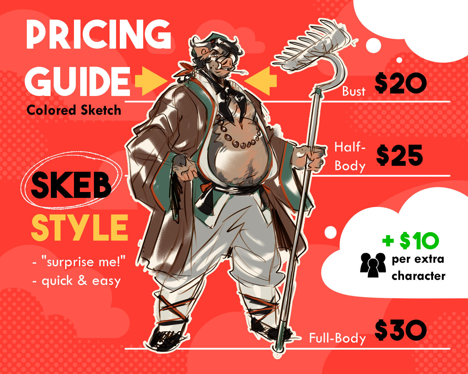 ☁︎ Commissions labeled as Skeb will not have communication via WIPs or progress updates. Instead, you will be notified when your commission has started and when the final product is finished.